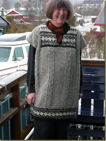 The pattern is in Vogue knitting winter 2009/10. After being knitting for a long time in only thin alpaca I wanted to knit in ordinary wool. The yarn smelled very much of sheep. I had to wash the first piece to see if I would finished the tunic. After wash the yarn turned out very soft and the colour much clearer. The water was really dirty after the first wash.